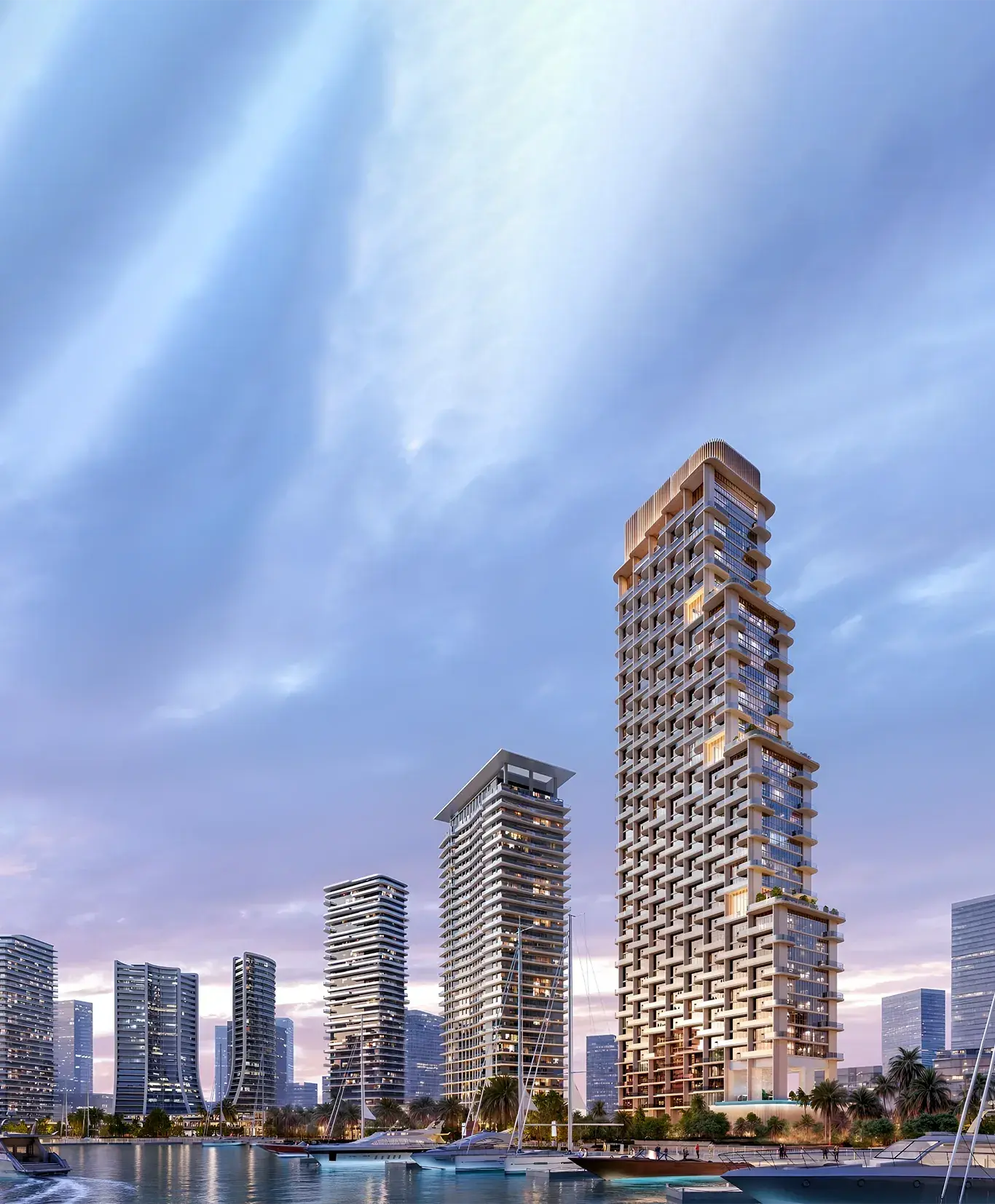 The Creekside offers luxury waterfront residences and hospitality, complemented by cafés, restaurants, and boutiques along a vibrant promenade connected to the towers’ amenities. This scenic waterfront links the district to Dubai Creek, featuring autonomous electric abras.